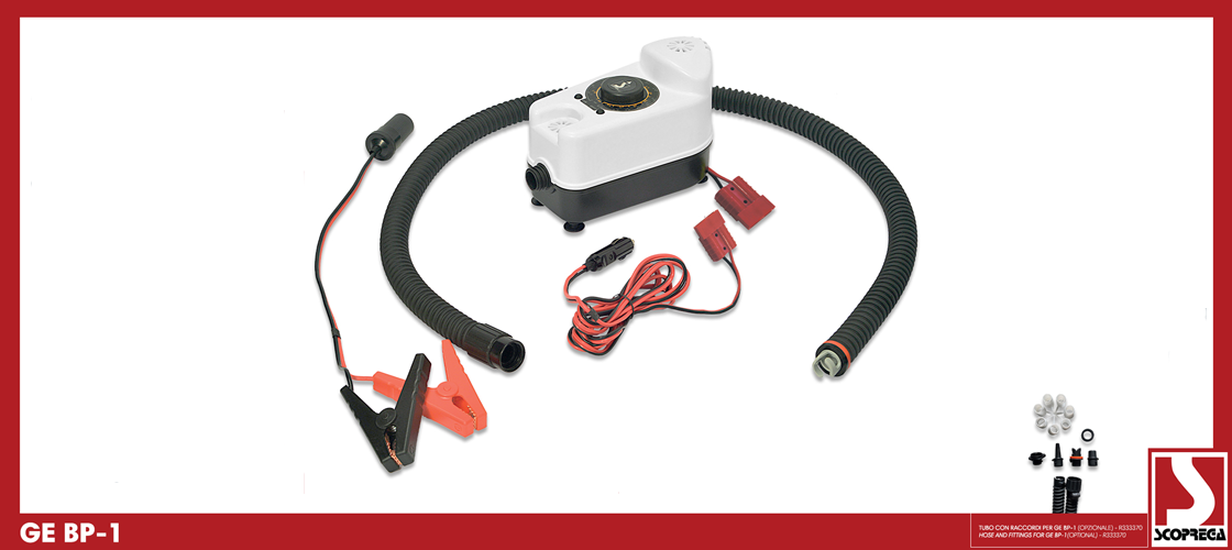 Al fine di poter utilizzare il GE BP-1 anche per il gonfiaggio di Gommoni, Kites, Zattere, Materassi ad aria e gonfiabili da piscina, abbiamo creato un kit ricambi (nostro codice R333370) che include un tubo aggiuntivo e una serie di raccordi per tutte le varie applicazioni, da ordinare separatamente.